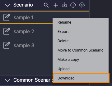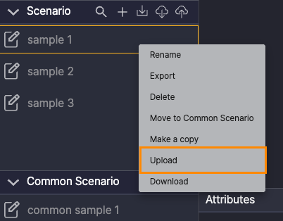 Common Scenario를 업로드할 경우, Common Scenario를 사용하는 다른 시나리오도 함께 업로드됩니다.