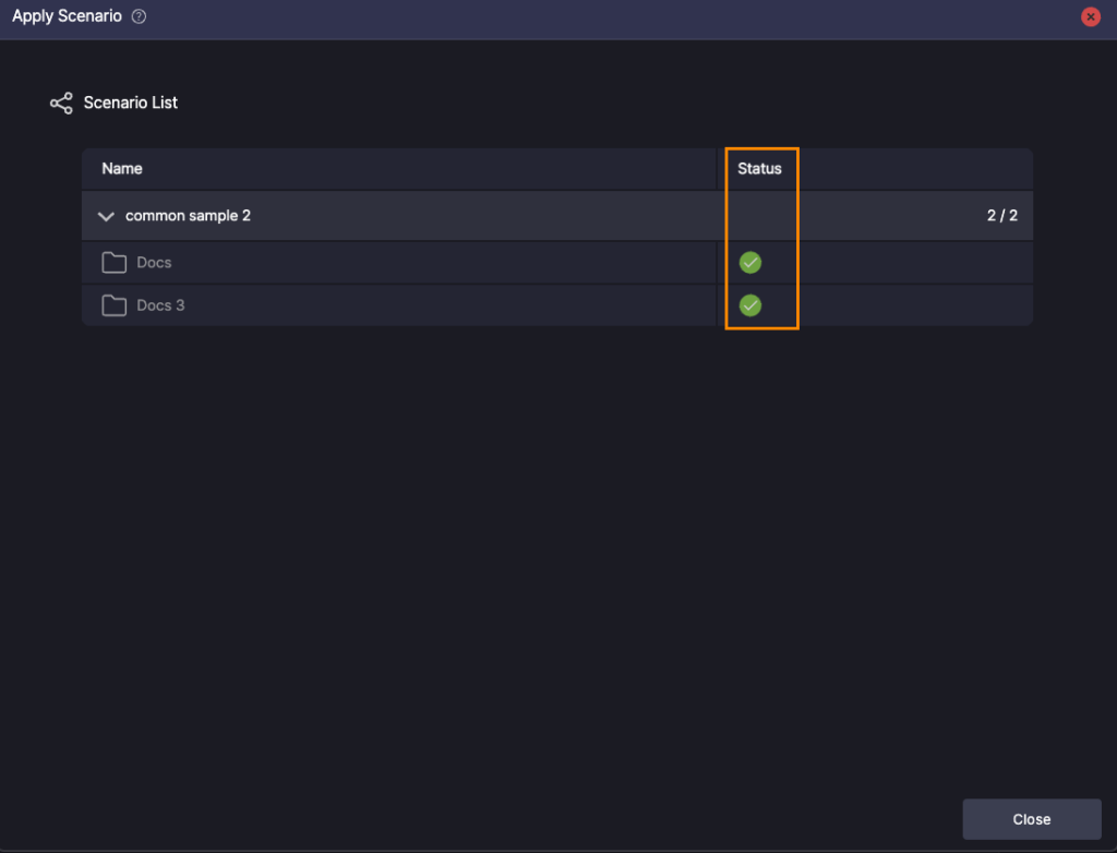 현재 폴더의 Common Scenario를 다른 폴더에 존재하는 동일한 이름의 Common Scenario에 동기화할 수 있습니다.