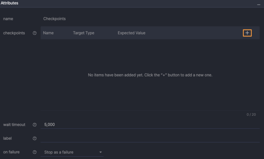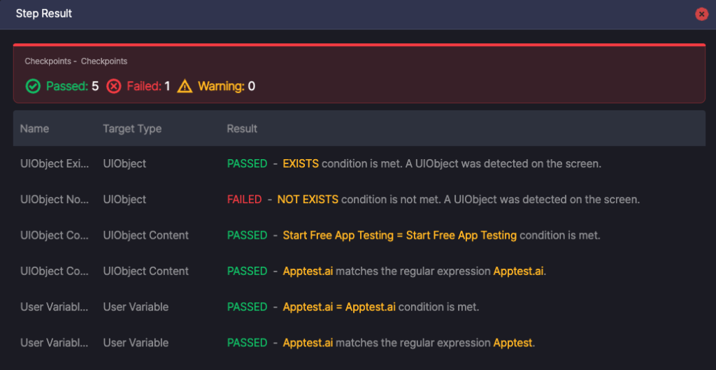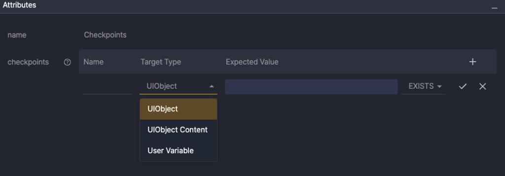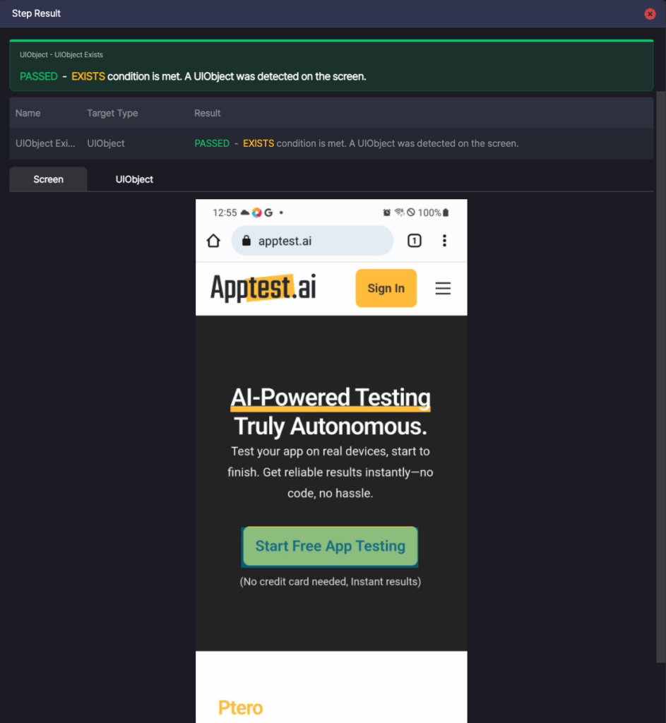 Step 1. 새 스텝을 만들고, 액션으로 “Assert UIObject”를 선택합니다.