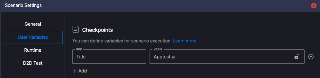 시나리오에 활용할 Title 이름을 User Variables 로 설정합니다: