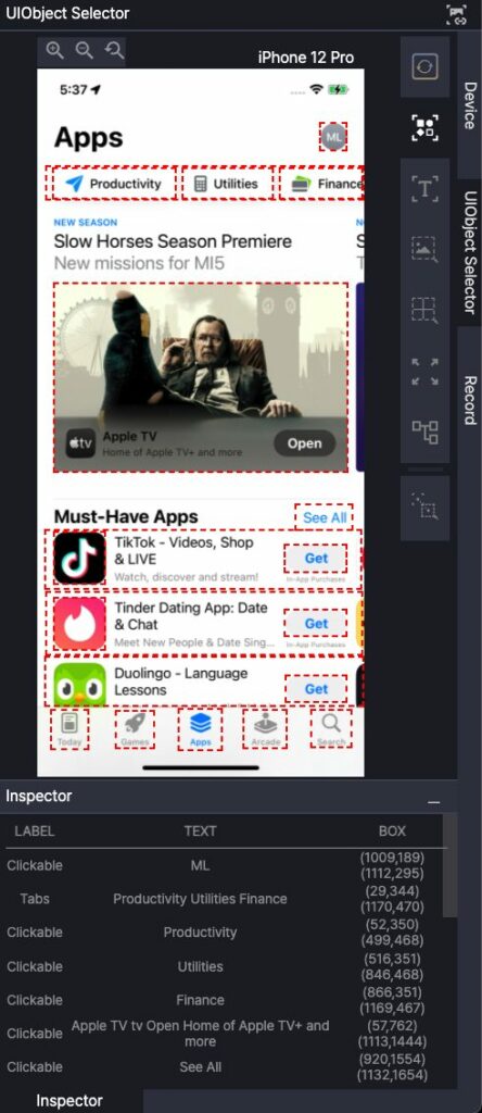 AI가 OD(Object Detection)로 인식한 UIObject의 정보는 Inspector 패널에서 확인할 수 있습니다.