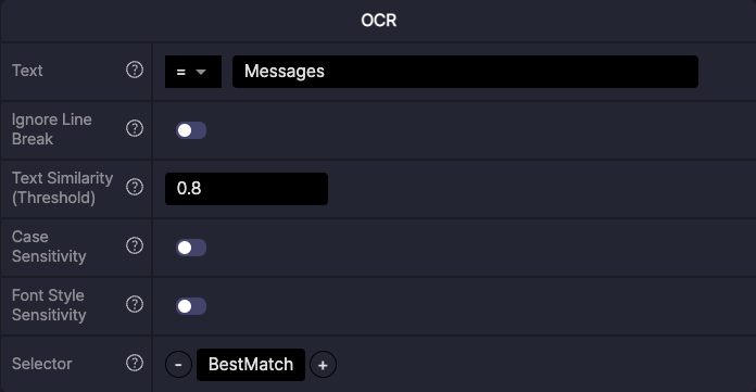 UIObject Field에서 OCR를 클릭해 OCR의 속성을 수정할 수 있습니다.
