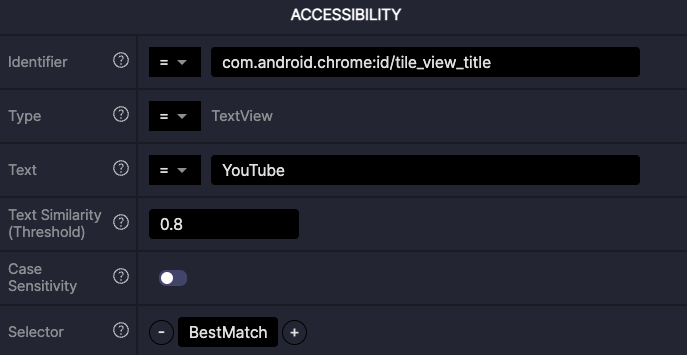 - BestMatch: 가장 적합한 UIObject 매칭 (Selector의 기본값)