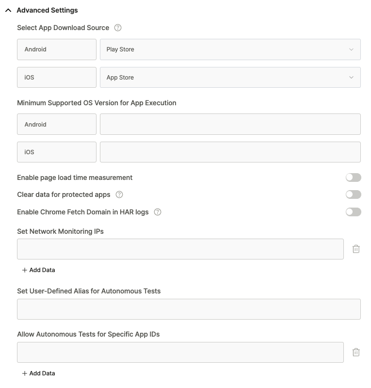 - Enable network capture: 테스트 중 앱의 네트워크 트래픽을 HAR 데이터로 수집할 수 있습니다.
