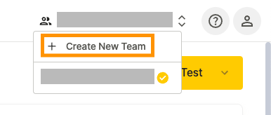 우측 상단의 {Username}'s team을 클릭한 후, Create New Team을 선택합니다.
