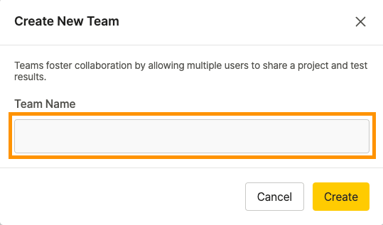 생성할 팀의 이름을 입력한 후, Create 버튼을 클릭해 팀을 생성합니다.