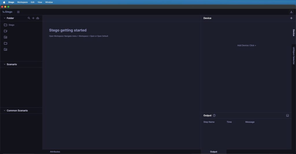 Stego는 테스트 시나리오를 작성하고 디바이스를 제어하는 통합 작업 공간입니다.